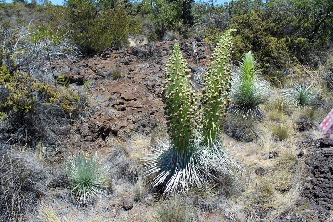 Hawai’i Volcanoes National Park employees, volunteers and partners are doing an incredibly important job securing large-scale habitat and stabilizing current populations. Science and muscle save silverswords from extinction. Toiling on hard rock at high altitude, park crews have erected miles of fence and smaller “exclosures” to keep out foraging cattle, sheep and goats. These animals eat silverswords and other alpine plants like candy.